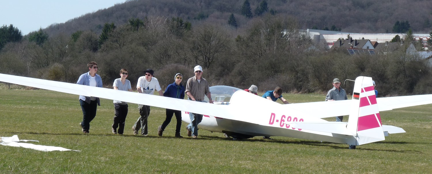 Segelflug ist Teamsport. Um ein Segelflugzeug in die Luft zu bringen bedarf es einer Bodenmannschaft. Ob Startleiter, Seilrückholer oder Startwindenfahrer, hier werden jede Menge hilfreiche Hände gebraucht, den Flieger in die Luft zu bringen.
